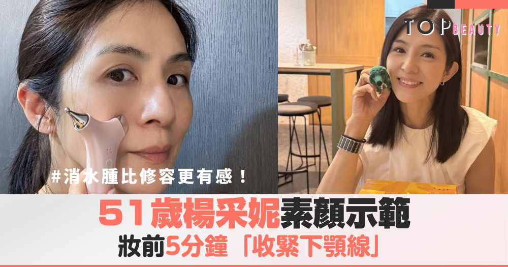 51歲楊采妮素顏示範:妝前5分鐘「收緊下顎線」,消水腫比修容更有感!
